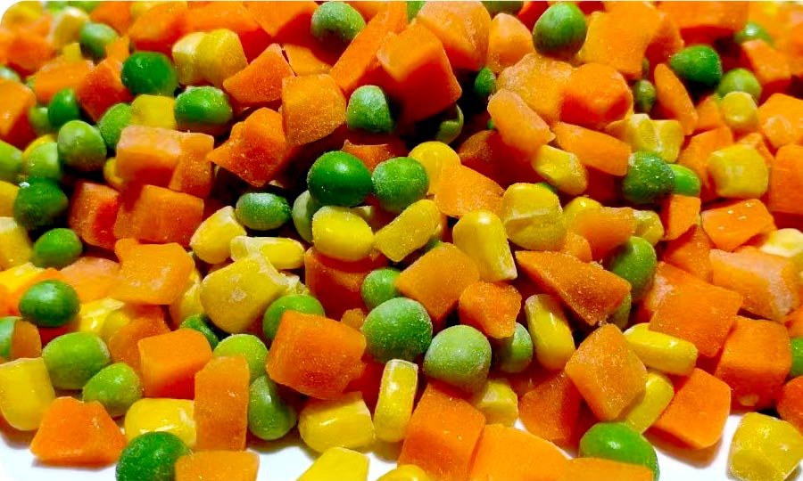 냉동대파, 냉동 부추 , 냉동 완두콩, 냉동옥수수 및 조각, 브로콜리, 화이트 콜리플라워, 토란, 오크라, 시금치, 다진 고추, 다진 양파, 다진 감자, 다진 당근, 혼합 채소, 마늘 조각, 생강 퓨레, 완두콩 조각 및 스트립, 부추, 파, 아스파라거스, 연근, 고추, 완두콩, 네덜란드 콩, 다진 파슬리 및 기타 유형의 채소.